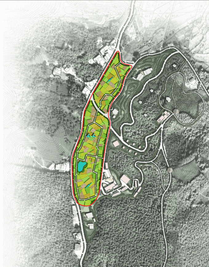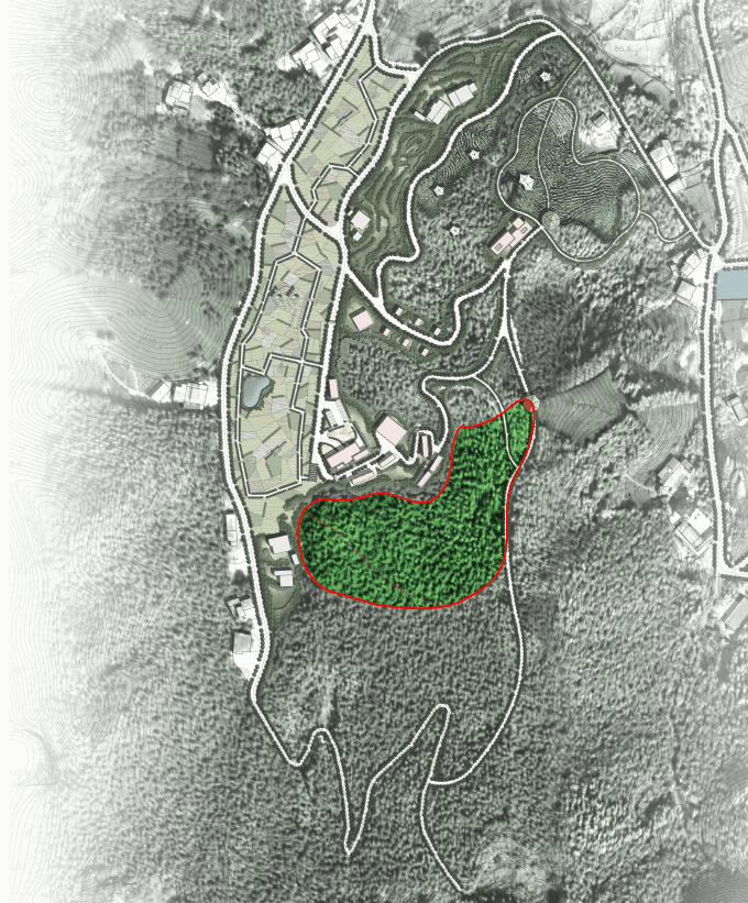设计构思:有机林场板块依托现状的竹林资源本底,融入自然肌理和创意农业元素,构建林下培育竹荪、金线莲、三叶青等珍稀中药材的林—药种植体系,在提升竹林产业价值的同时,也为园区高端食材和特色产品提供原材料。同时,板块围绕“鸡”主题来展开体验林下抓鸡、捡蛋等林间娱乐活动,趣味十足。